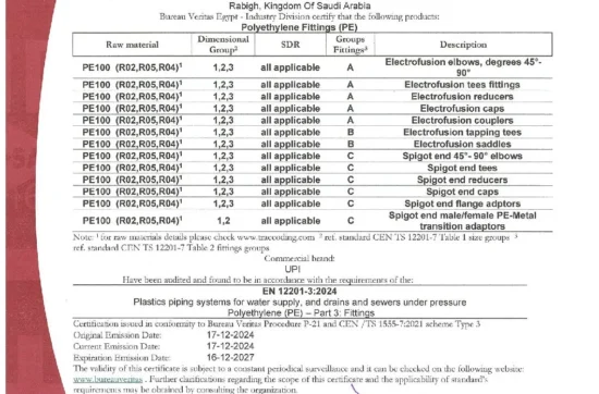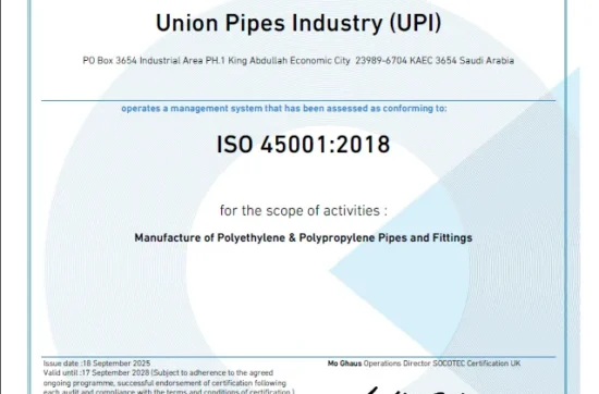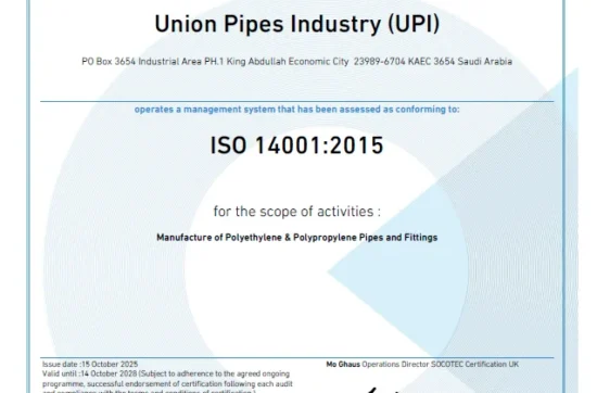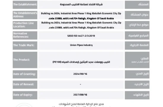 Union Pipes Industry – KSA WRAS Approval