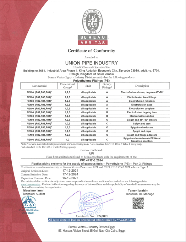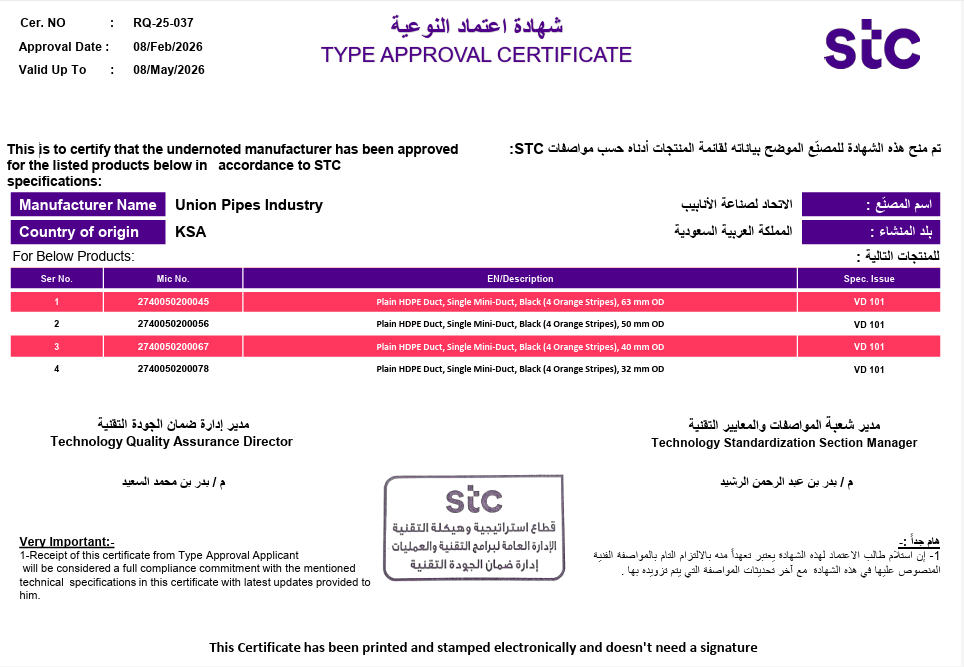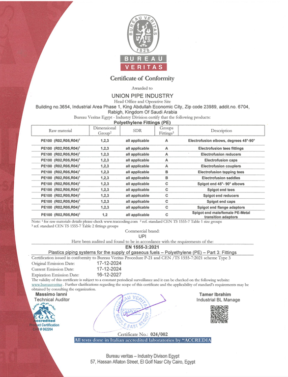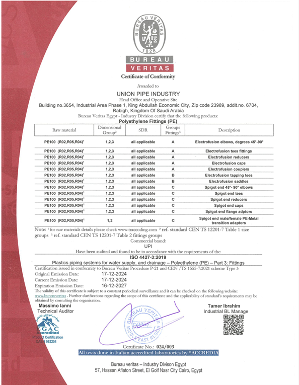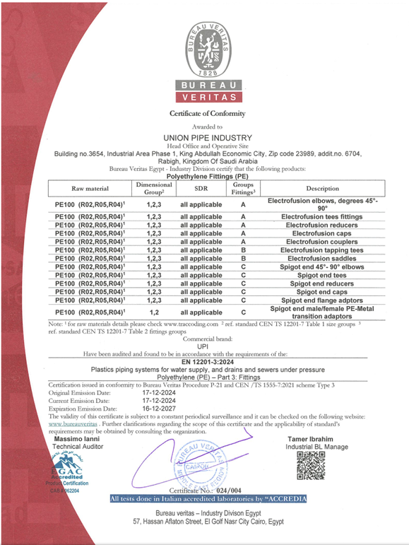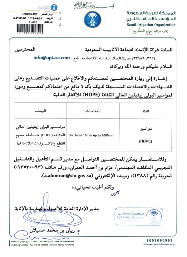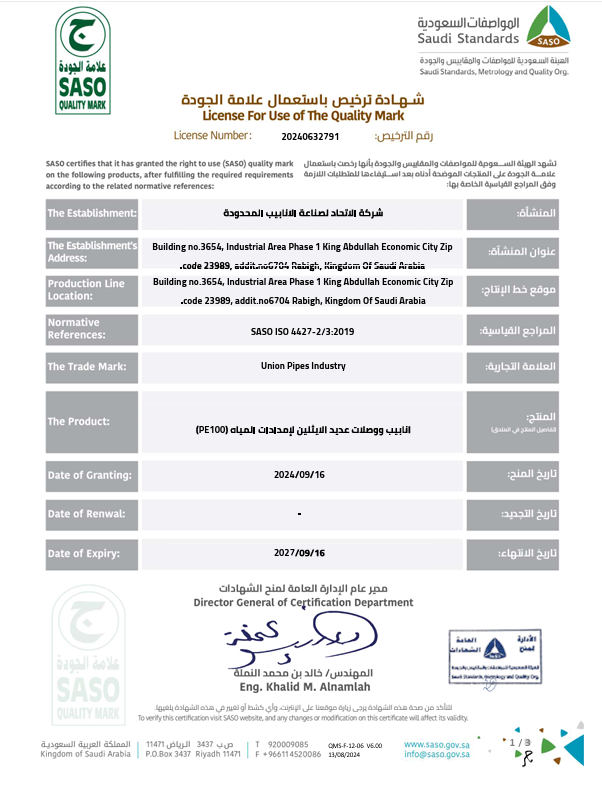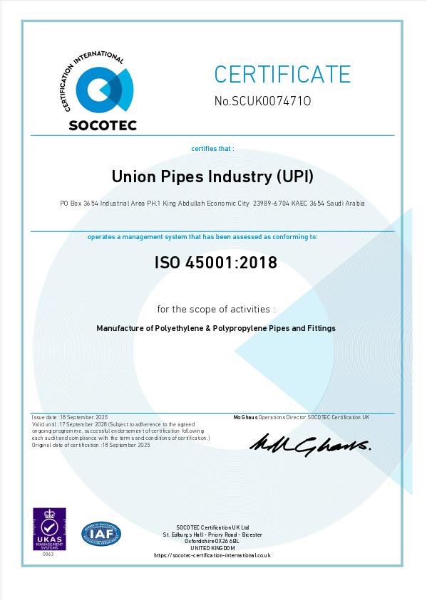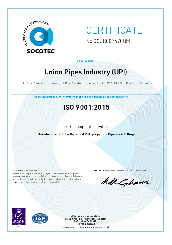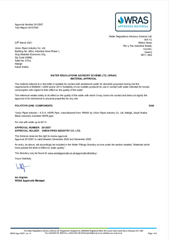 Union Pipes Industry – KSA WRAS Approval