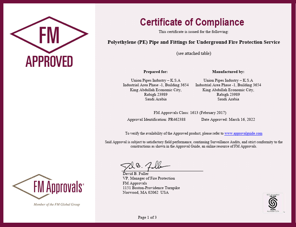 Union Pipes Industry – KSA FM Approval