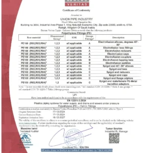 Share This Previous Post← Union Pipes Industry – KSA – Electracity Vendor ID Union Pipes Industry – KSA – Electracity Vendor ID Next PostBUREAU VERITAS 004 → BUREAU VERITAS 004 You May Also Like Research Findings BUREAU VERITAS 001 View Post Quality Improvements المؤسسة العامة للري View Post Quality Improvements شهادة اعتماد المواد View Post