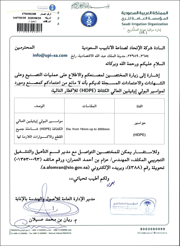 Share This Previous Post← Red SAE Approval Red SAE Approval Next Postشهادة اعتماد المواد → شهادة اعتماد المواد You May Also Like Quality Improvements شهادة اعتماد المواد View Post Research Findings BUREAU VERITAS 002 View Post Uncategorized Union Pipes Industry – KSA – Electracity Vendor ID View Post